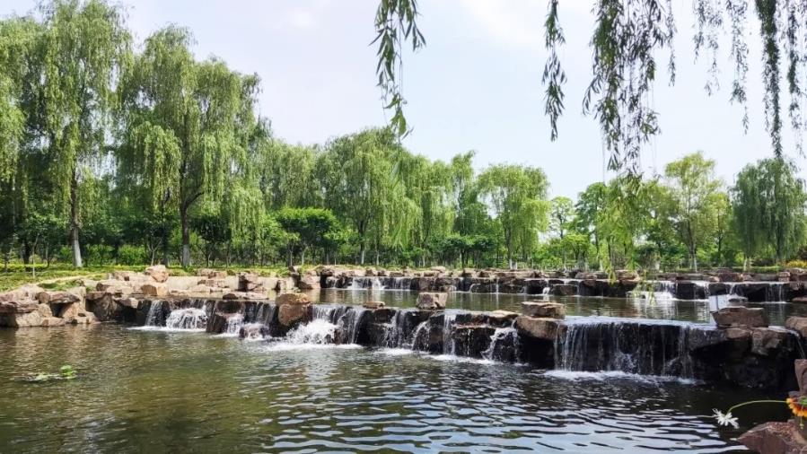 安徽省六安市鳳凰河濕地公園中的網紅“瀑布”,水流為鳳凰橋污水處理廠的尾水。攝影:謝澤